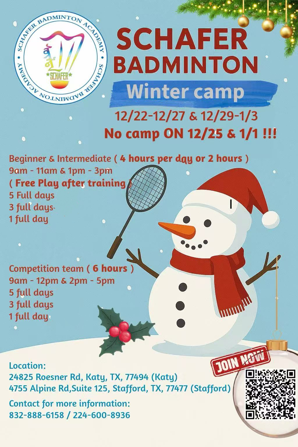 🏸 Schafer Badminton Winter Camp is here! ❄️
